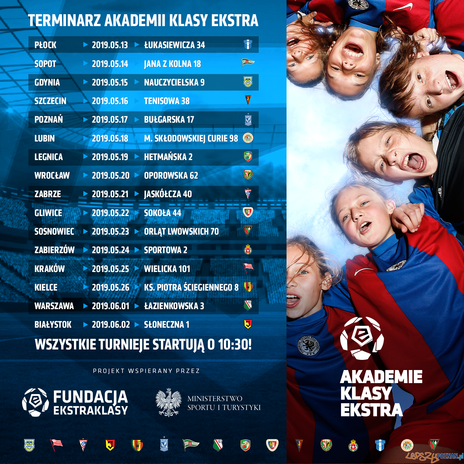 Rusza czwarta edycja cyklu imprez piłkarskich dla najmłodszych pod hasłem Akademie Klasy Ekstra, organizowana przez Ekstraklasę SA dzięki wsparciu Ministerstwa Sportu i Turystyki. W ramach projektu w szesnastu klubach Ekstraklasy rozgrywane będą turnieje dla dzieci do 11. roku życia.