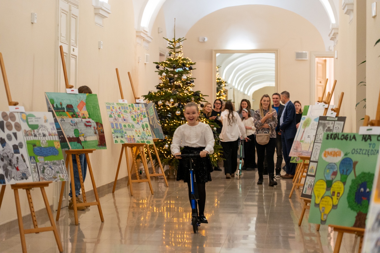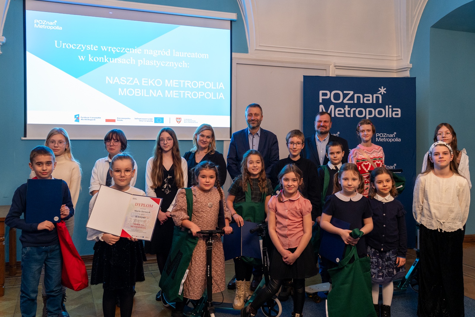 Sala Błękitna wypełniła się młodymi artystami, ich opiekunami oraz samorządowcami. Okazją było wręczenie nagród w konkursach „Mobilna Metropolia” oraz „Nasza Eko Metropolia”. Organizatorzy szukali odpowiedzi na pytanie, jak dzieci i młodzież wyobrażają sobie transport i ochronę przyrody w swoich małych ojczyznach.