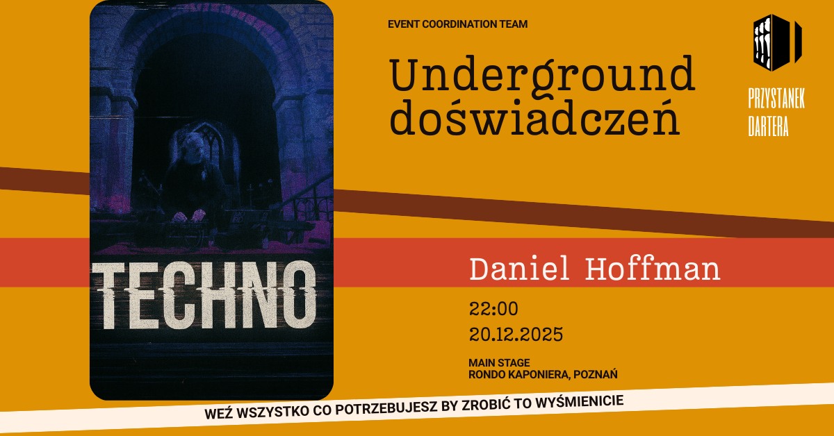 Daniel Set na Przystanku Darter oferuje coś więcej niż tylko dźwięki – to zaproszenie do wspólnego doświadczenia, które trudno mierzyć czy oceniać. Trans staje się tu narzędziem wyzwolenia, chwilą oderwania od świata na zewnątrz. To wydarzenie ma na celu stworzenie bezpiecznej przestrzeni zarówno dla starych wyjadaczy podziemia muzycznego jak i dla tych, którzy dopiero zaczynają swoją przygodę z deep minimalem. „TECHNO TO COŚ WIĘCEJ” – to motto tej nocy nie jest pustym sloganem.