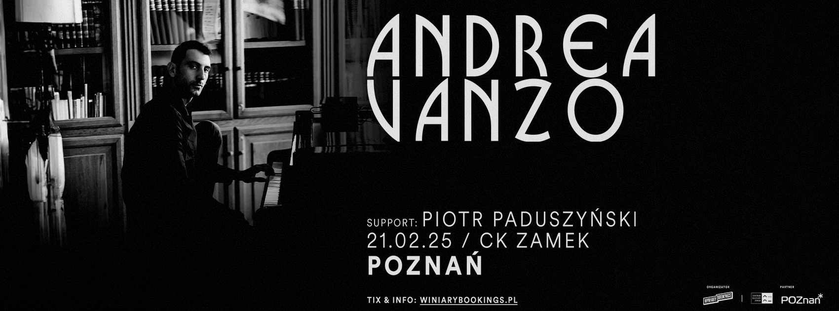 Bilety są dostępne online pod tym adresem: https://bit.ly/ANDREA_VANZO_PZN oraz w autoryzowanych punktach sprzedaży takich jak Going, Empik Bilety czy Ticketmaster. W trosce o nasze środowisko zachęcamy wszystkie osoby do okazywania biletów na telefonie, zamiast drukowania ich.