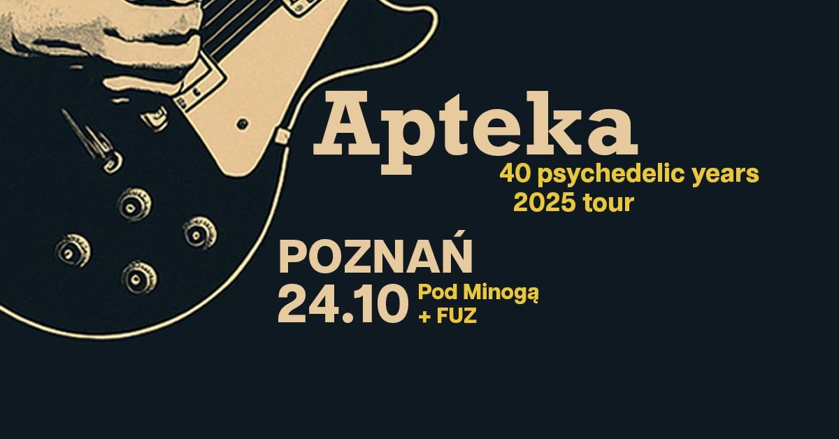 Jesień 2025 roku będzie wyjątkowo gorąca dla fanów psychodelii i rockowych brzmień w Polsce. Artefact Music oraz KW Bookings zapraszają wszystkich miłośników muzyki do wspólnego świętowania 40-lecia legendarnego zespołu Apteka. Ten bezkompromisowy kolektyw, który od czterech dekad wyznacza nowe ścieżki w polskim rocku, zawita do Poznania na trasie „40 Psychedelic Years 2025 Tour”. Będzie to niepowtarzalna okazja, by zanurzyć się w hipnotyzujących dźwiękach psychodelicznego rocka, które po mistrzowsku łączy Jędrzej Kodymowski wraz z zespołem.