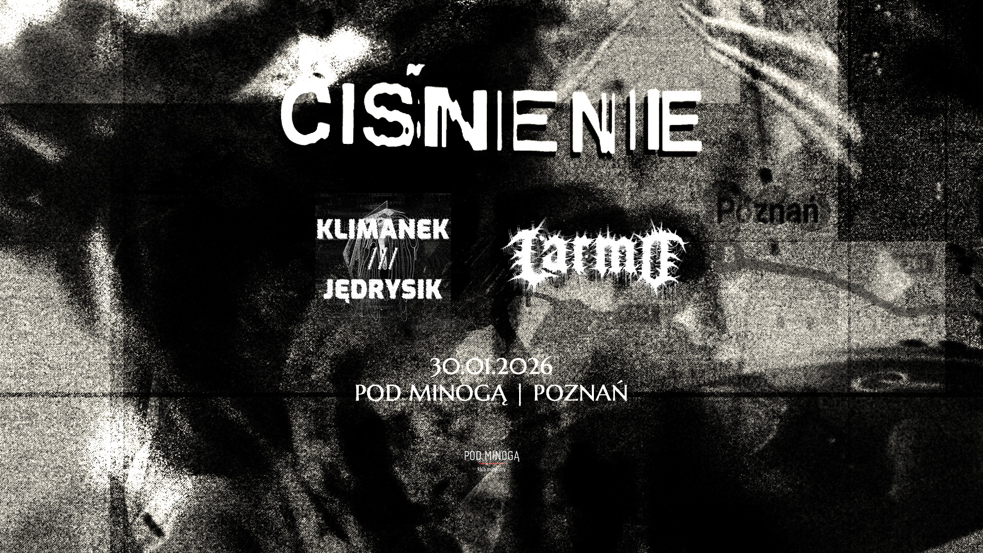 Poznań, klub Pod Minogą, 30 stycznia 2026 – to data, której nie może przegapić żaden miłośnik ambitnej, improwizowanej i ekstremalnej muzyki niezależnej. Katowickie CIŚNIENIE powraca ze świeżym materiałem promując najnowszy album pt. [angry noises], zapowiadając prawdziwą dźwiękową apokalipsę. Koncert będzie wyjątkowym wydarzeniem, podczas którego na scenie pojawią się również artyści tworzący w duchu improwizacji i eksperymentu – duet KLIMANEK / JĘDRYSIK oraz katowicki twórca elektroniki i noise’u – LARM.