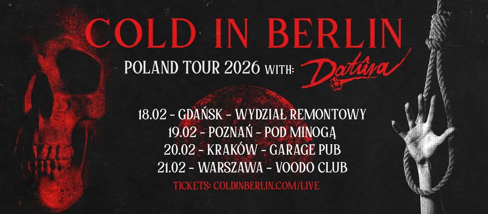 Podczas koncertów usłyszymy utwory z najnowszego albumu „Wounds”, który potwierdza, że Cold in Berlin to zespół, którego twórczość wykracza poza schematy gatunkowe, łącząc intensywność z głębią emocji. Ich występy to nie tylko koncerty, ale prawdziwe muzyczne doświadczenia, które na długo pozostają w pamięci słuchaczy.
