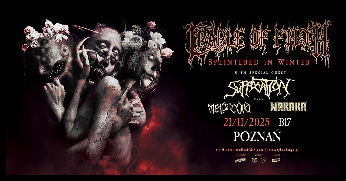 Poznań, 21 listopada 2025 roku – to data, którą z pewnością każdy fan ekstremalnych gatunków metalowych musi zaznaczyć grubą czcionką w kalendarzu. Klub B17, znany z organizacji niezapomnianych koncertów metalowych, stanie się areną wyjątkowego wydarzenia – na scenie pojawią się legendy światowego metalu, które od lat wyznaczają kierunki i wyznaczają nowe standardy w mrocznej muzyce. Brytyjscy władcy symfonicznego black metalu – Cradle of Filth – zaprezentują materiał z najnowszego, czternastego albumu „The Screaming of the Valkyries”, a podczas tego wieczoru nie zabraknie także wielkiego amerykańskiego death metalowego klasyka – Suffocation, które wspólnie z gośćmi specjalnymi dostarczą fanom potężną dawkę brutalnej i teatralnej muzyki.