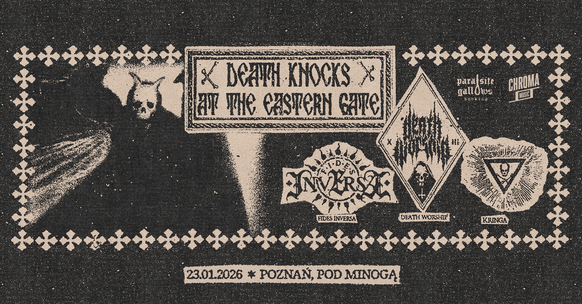 Poznań stanie się kolejną twierdzą surowego, nieokrzesanego dźwięku dzięki wyjątkowemu koncertowi, który zorganizują Chroma Music i Parasite Gallows Booking. Już 23 stycznia 2026 roku w legendarnym klubie Pod Minogą szykuje się prawdziwa uczta dla fanów black i death metalu najwyższej próby. Na jednej scenie wystąpią trzy zespoły, które w swoich krajach reprezentują ekstremalne, bezkompromisowe brzmienia wybrzmiewające w duchu undergroundowej tradycji – kanadyjski Death Worship, włoska Fides Inversa oraz austriacka Kringa.