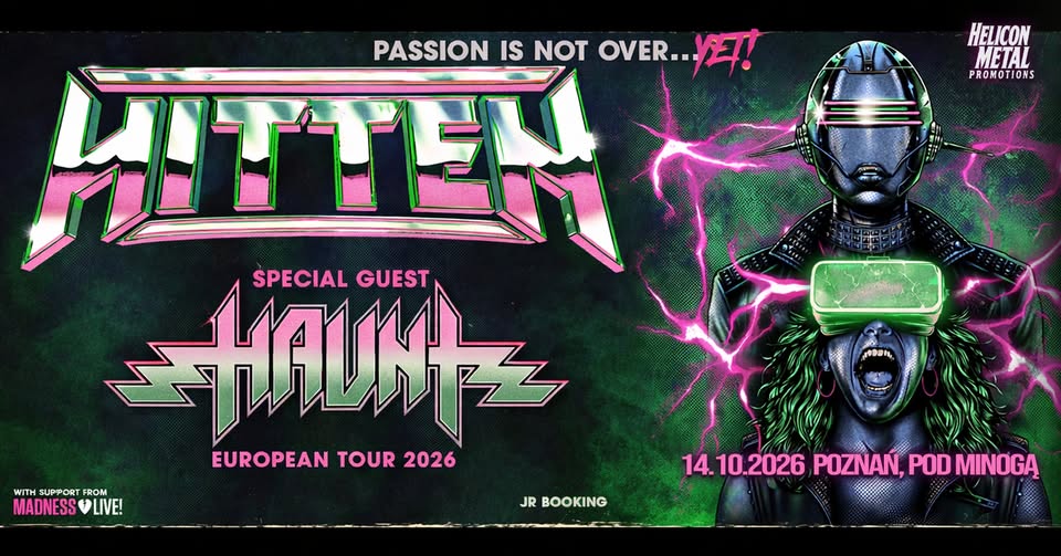 Helicon Metal Promotions zaprasza na wyjątkowy koncert, który odbędzie się 14 października 2026 roku w poznańskim klubie Pod Minogą. To wydarzenie będzie okazją do posłuchania na żywo dwóch znakomitych zespołów grających heavy metal – hiszpańskiego HITTEN oraz amerykańskiej formacji HAUNT. Koncert ten wpisuje się w promocję najnowszego albumu HITTEN zatytułowanego „While Passion Lasts”, który miał swoją premierę pod koniec listopada 2023 roku i został wydany przez renomowaną wytwórnię High Roller Records.