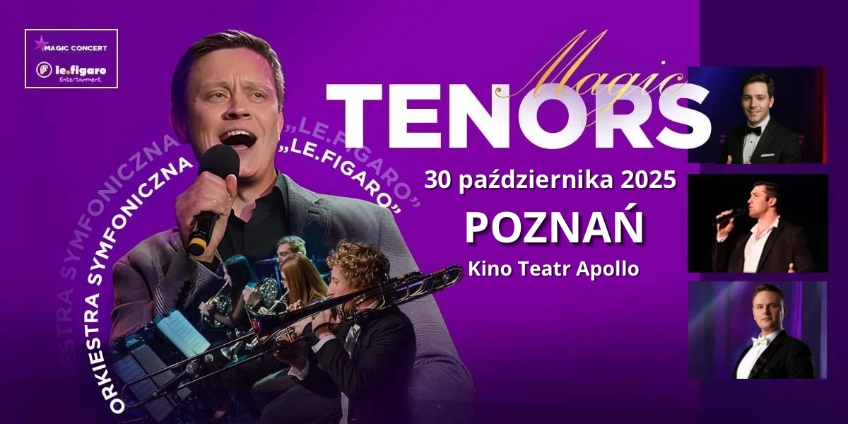 Miłośnicy wyjątkowych wydarzeń muzycznych mogą zacierać ręce – poznaniacy i wszyscy fani muzyki klasycznej i rozrywkowej mają niepowtarzalną okazję przeżyć niezapomniany wieczór z Magic Tenors i towarzyszącą im Orkiestrą Le Figaro. Po znakomitym przyjęciu poprzednich koncertów, które zebrały owacje na stojąco, artyści wracają do Poznania z zupełnie nowym, świeżym programem pełnym magii i mistrzowskich interpretacji. Zapraszamy do Kina Teatru Apollo 30 października o godzinie 19:00 – to wydarzenie, którego nie można przegapić!