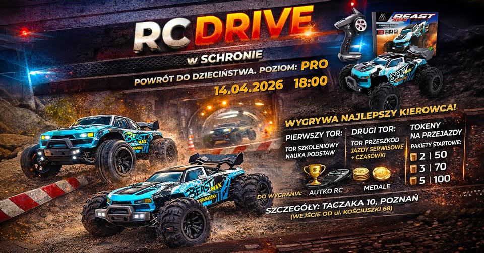 Wydarzenie zatytułowane „RC Drive w Schronie – Powrót do dzieciństwa. Poziom: Pro” to wyjątkowa okazja, by na własnej skórze doświadczyć prawdziwej jazdy na torze przeszkód, który sprawdzi refleks, koncentrację i kontrolę nad szybkim modelem RC. Organizatorzy przygotowali specjalny tor przeszkód, na którym uczestnicy będą mogli rywalizować, korzystając z profesjonalnych modeli terenowych SG116MAX. To kompaktowe, ale niezwykle mocne pojazdy, wyposażone w metalowe elementy układu napędowego i precyzyjne sterowanie, zapewniające prawdziwą szkołę kontroli i reakcji.