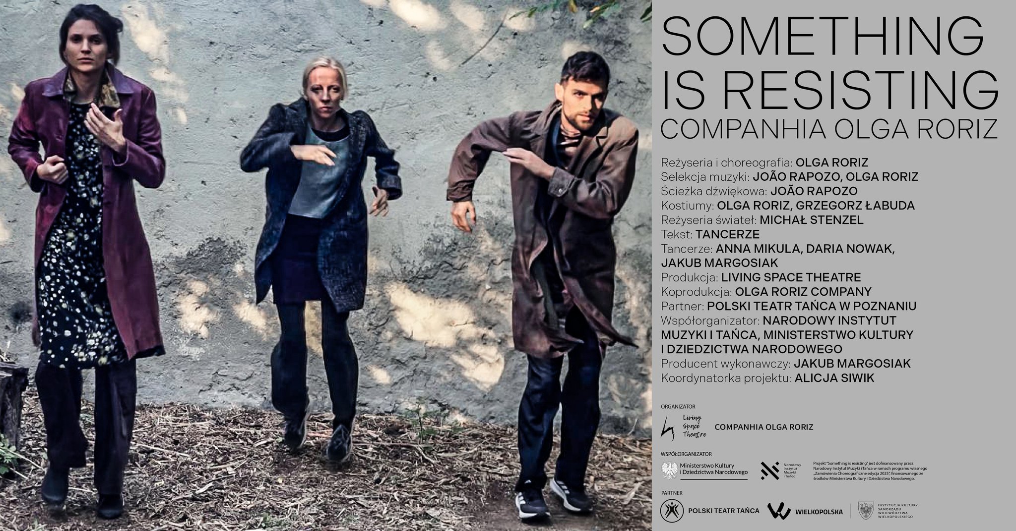 Pokaz „Something is Resisting” jest efektem kooperacji Living Space Theatre oraz Olga Roriz Company przy wsparciu Polskiego Teatru Tańca w Poznaniu. Współorganizatorzy to także Narodowy Instytut Muzyki i Tańca oraz Ministerstwo Kultury i Dziedzictwa Narodowego, co świadczy o wysokim prestiżu wydarzenia oraz jego istotności dla rozwoju polskiej sceny artystycznej.