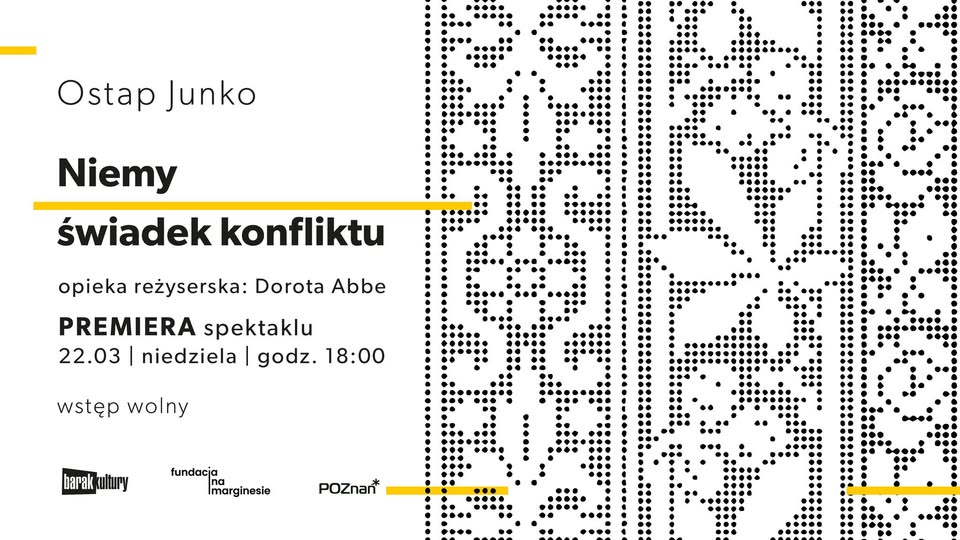 22mar17:0019:00Premiera monodramu „Niemy świadek konfliktu” w PoznaniuBarak Kultury