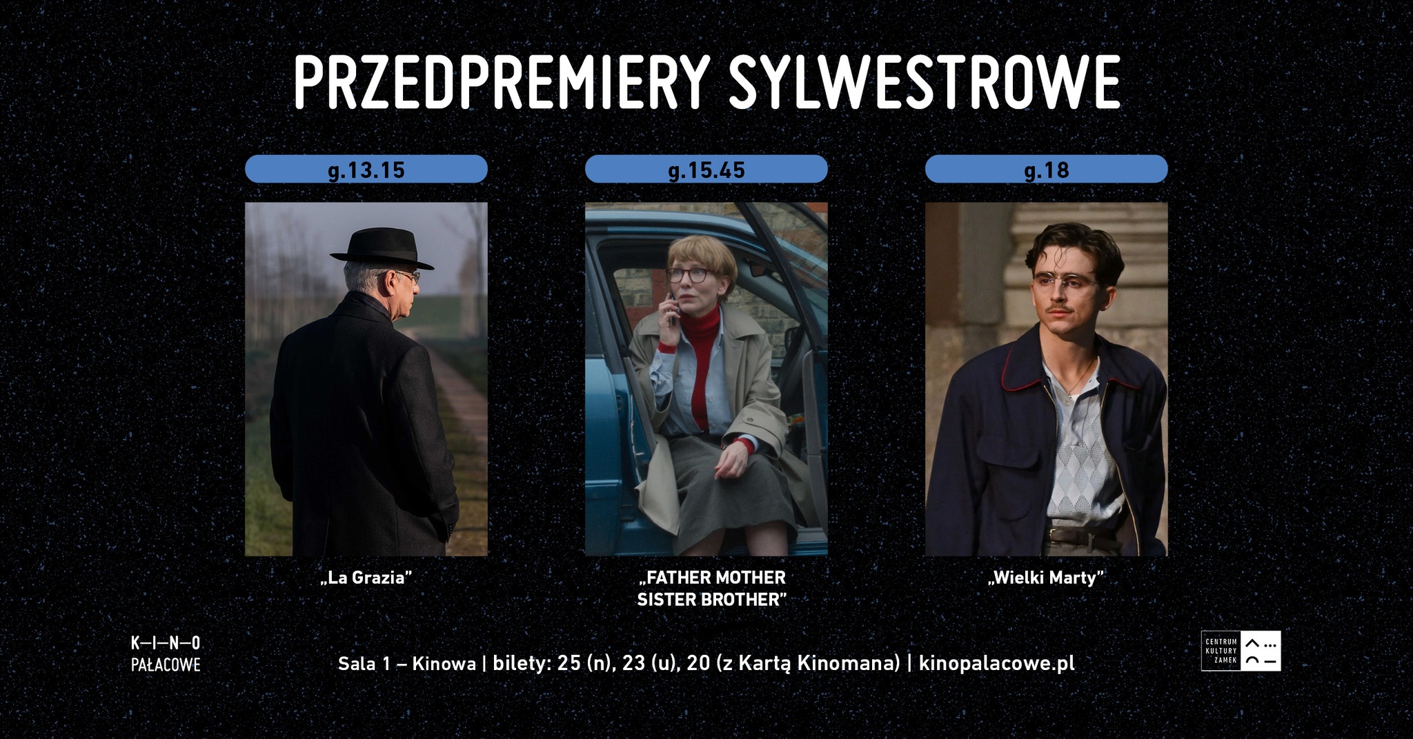 Jeśli marzysz o nietuzinkowym wejściu w Nowy Rok, bilety na każdy z seansów czekają w sprzedaży już teraz. Kosztują one jedynie 25 zł normalny, 23 zł ulgowy oraz 20 zł przy okazaniu Karty Kinomana – dla stałych bywalców kina atrakcyjna oferta, która umożliwia kosztowanie największych filmowych perełek bez zrujnowania budżetu. Pamiętajcie jednak, że na każdy seans obowiązuje osobny bilet – więc jeśli pragniecie przeżyć filmową podróż przez trzy różne światy i klimaty, przygotujcie portfele na trzy zakupy.