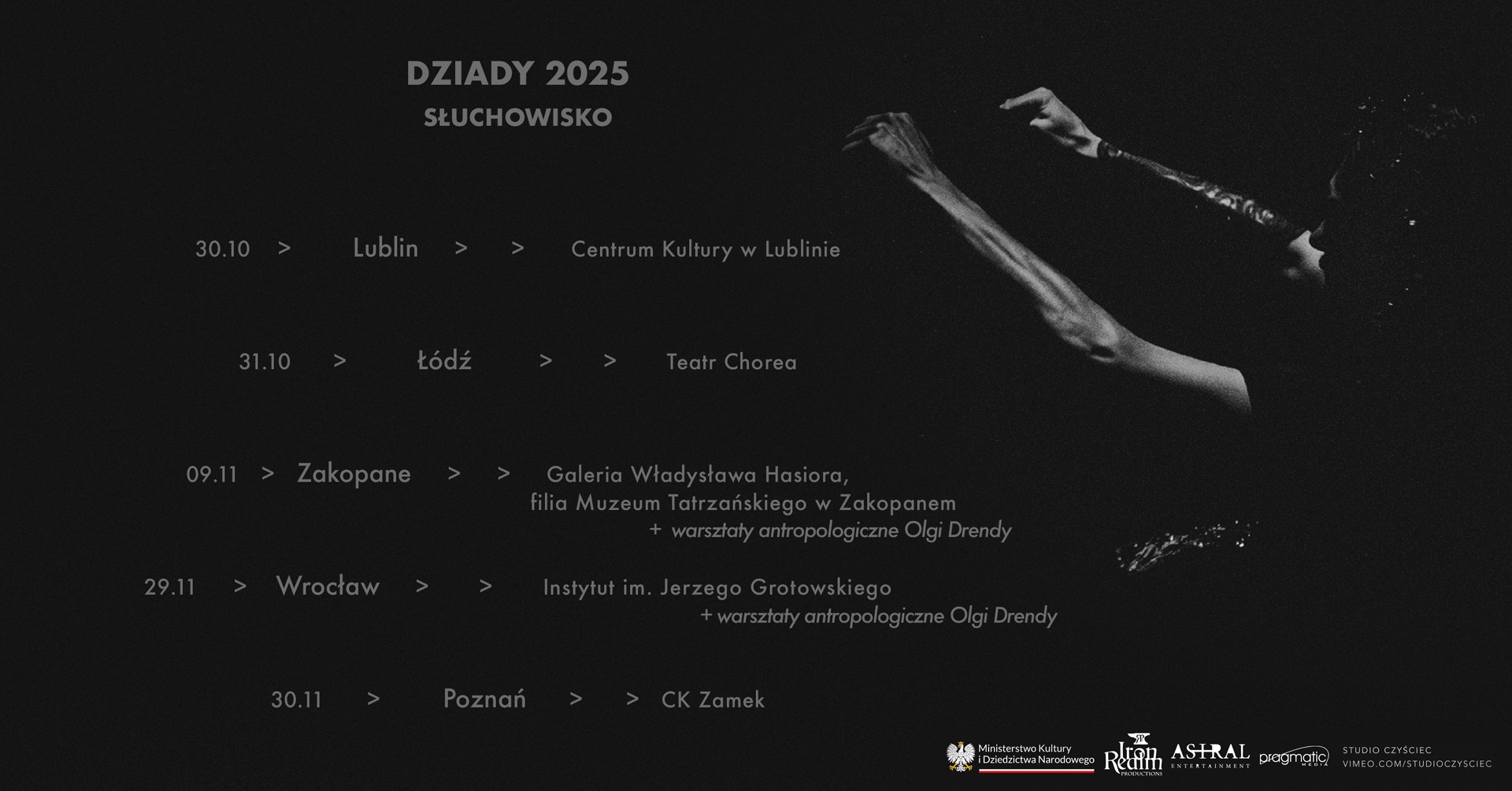 - Wrocław (29.11) – Instytut Imienia Jerzego Grotowskiego