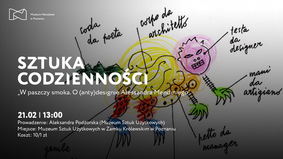 21 lutego o godzinie 13:00 w Muzeum Sztuk Użytkowych w Zamku Królewskim w Poznaniu odbędzie się wyjątkowe wydarzenie poświęcone twórczości jednego z najbardziej cenionych włoskich projektantów – Alessandra Mendiniego. Spotkanie zatytułowane „W paszczy smoka. O (anty)designie Alessandra Mendiniego” będzie okazją do głębokiej refleksji nad jego unikalnym podejściem do designu, które łączy poetykę, empatię i ironię, redefiniując nasze spojrzenie na przedmioty codziennego użytku.