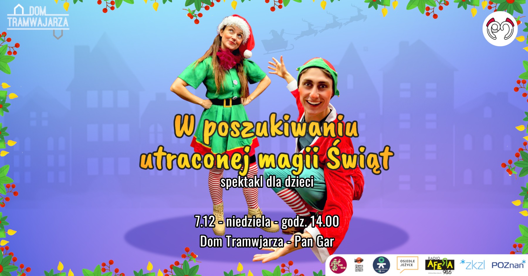 Już 7 grudnia, w niedzielne popołudnie, Dom Tramwajarza na Jeżycach zamieni się w prawdziwą krainę świątecznych cudów. Teatr PantoMimika zaprasza na specjalny, radosny i pełen magii familijny spektakl „W poszukiwaniu utraconej magii świąt”. To wyjątkowa okazja, by poczuć ducha Bożego Narodzenia wraz z najmłodszymi – przedszkolakami i uczniami klas pierwszych.