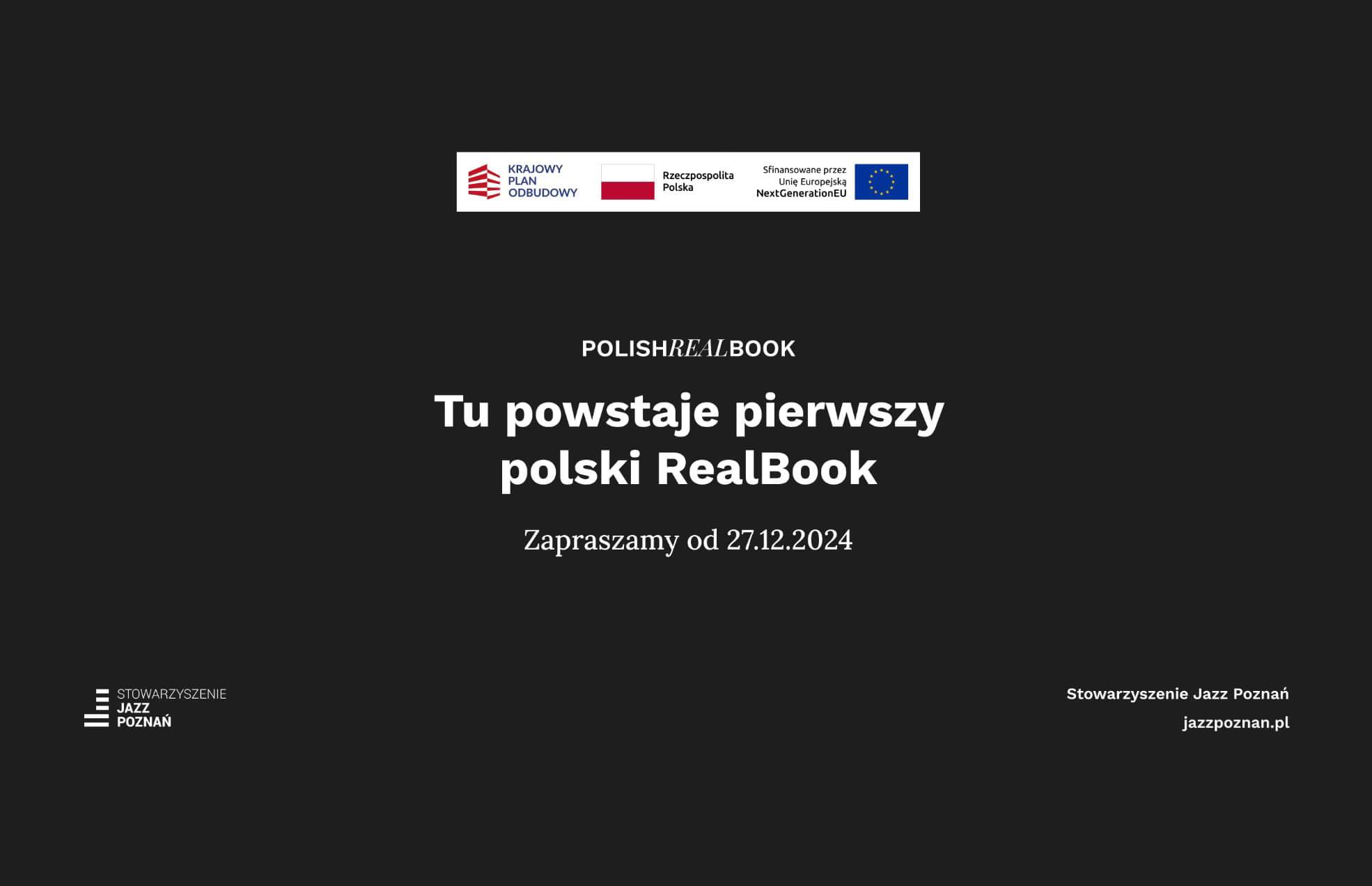 Już dziś, 21 października, o godz. 16:45 odbędzie się drugi z trzech zaplanowanych webinarów informacyjnych dotyczących jednego z najbardziej innowacyjnych projektów w polskim świecie muzyki – portalu www.polishrealbook.com. Ten unikalny projekt, współfinansowany przez Narodowy Instytut Muzyki i Tańca w ramach Krajowego Planu Odbudowy na Kulturę, ma na celu stworzenie przestrzeni, w której muzycy, kompozytorzy oraz miłośnicy jazzu będą mogli dzielić się swoimi pomysłami, utworami i inspiracjami.