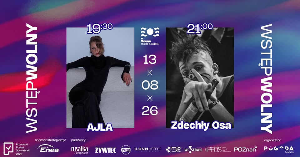 Już 13 sierpnia na scenie nad Rusałką w Poznaniu odbędzie się wyjątkowe muzyczne wydarzenie, które przyciągnie fanów zarówno alternatywnego rapu, jak i nowoczesnego neo-soulu. Dwie niezwykle utalentowane postaci młodej polskiej sceny muzycznej – Zdechły Osa oraz AJLA – zaprezentują swoje najnowsze projekty, zapewniając publiczności niezapomniane chwile pełne energii i emocji.