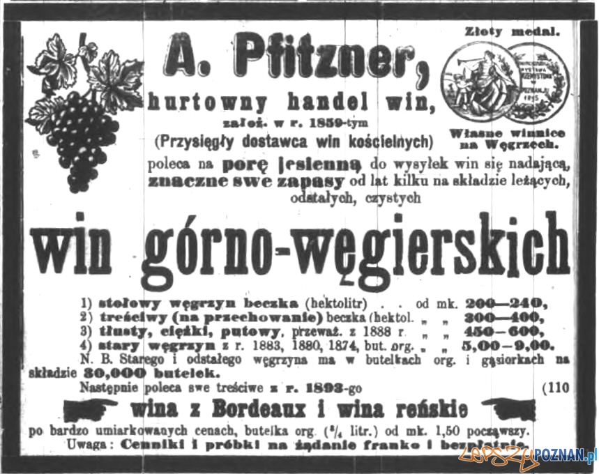 Na podstawie: Witold Molik, Cukiernia i hurtownia win Antoniego Pfitznera w 2 poło XIX w., KMP 2/2000
