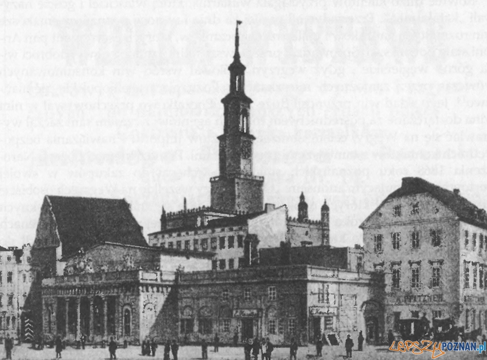 Stary Rynek w roku 1871, po prawej stronie budynek cukierni Antoniego Pfitznera, fot: poznan.wikia.com