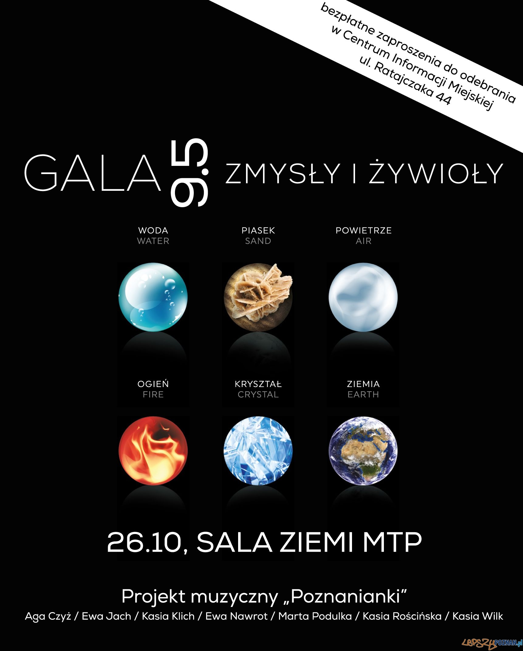 Salę Ziemi na Międzynarodowych Targach Poznańskich znają uczestnicy konferencji i koncertów. Są także mniejsze sale: Wody, Piasku, Powietrza, Ognia i Kryształu. I właśnie żywioły będą inspiracją 95 urodzin MTP, a głównym punktem gali premierowy koncert projektu muzycznego “Poznanianki”.