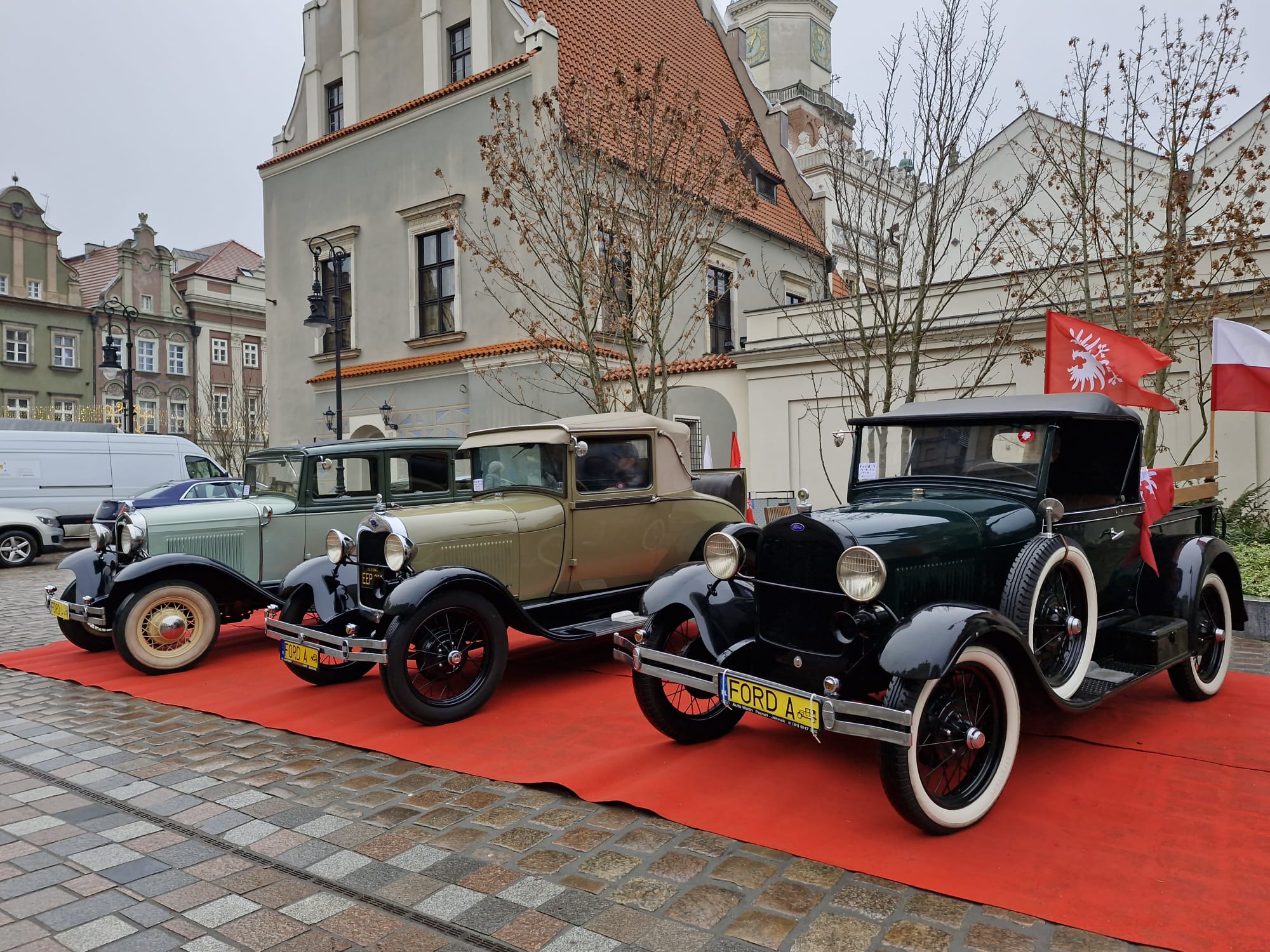 - Zabytkowe samochody, które przenoszą Stary Rynek w czasy dwudziestolecia międzywojennego.