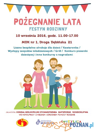 Festyn Rodzinny „POŻEGNANIE LATA” odbędzie się na terenie MDK nr 1, Droga Dębińska 21 w najbliższa sobotę 10 września 2016, w godzinach 11:00-17:00,