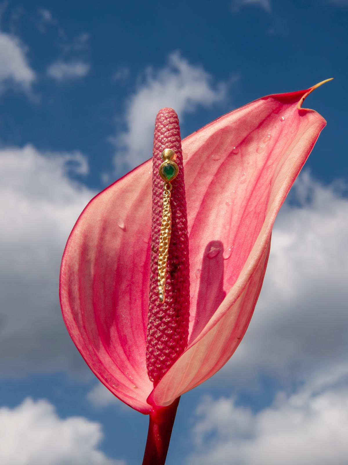 Projekty z kolekcji THEIA nabrały bardziej organicznego charakteru. To biżuteria wykonana ze złota i srebra, którą wyróżniają miękkie, płynne formy zestawione z ręcznie oprawianymi naturalnymi kamieniami. To wyjątkowa okazja, by zobaczyć efekty jej obecnych działań, które pokazują dojrzałość i nową wrażliwość projektantki.