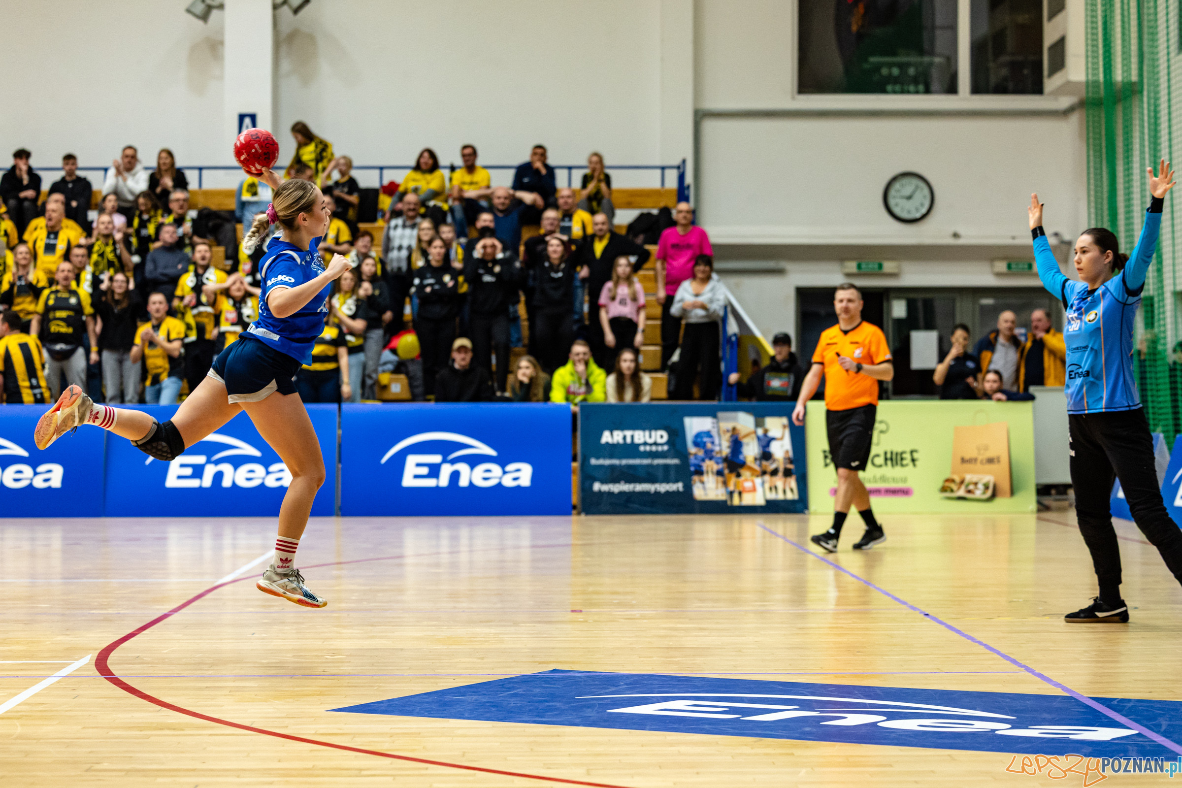 Gospodynie od początku podjęły walkę z bardziej doświadczonym rywalem i przez większą część pierwszej połowy utrzymywały kontakt bramkowy. Do przerwy ENEA przegrywała czterema trafieniami (12:16), prezentując odważną grę w ataku i dużą determinację w defensywie.