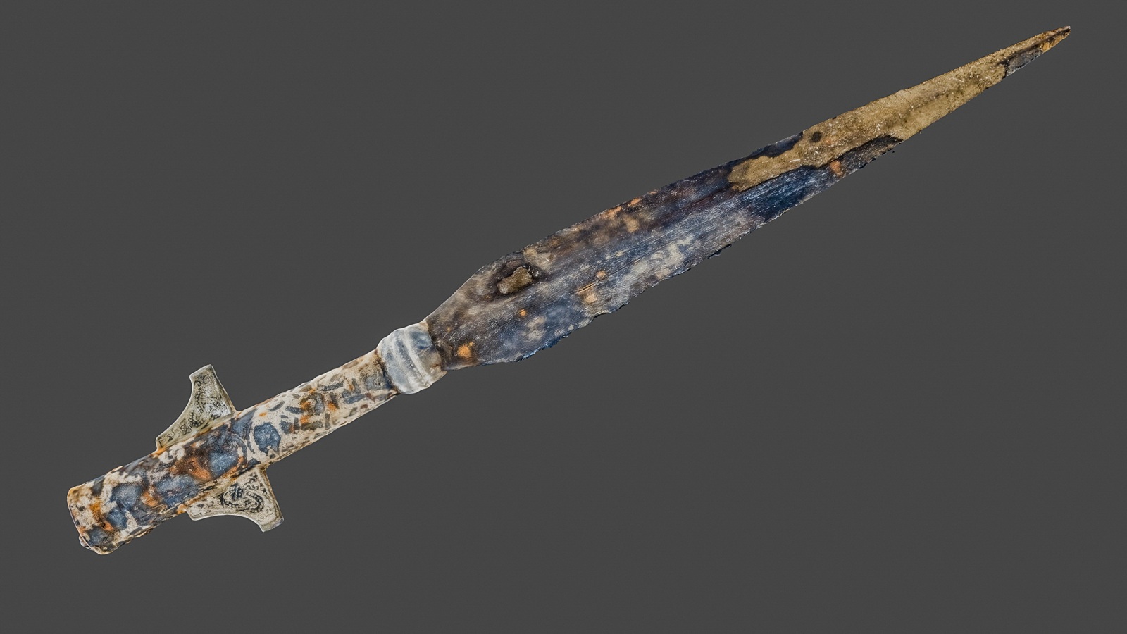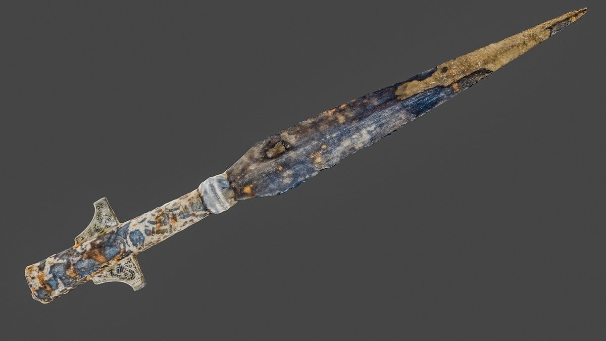 Największe emocje wzbudza jednak tzw. „włócznia książęca”. Z broni zachował się bogato zdobiony grot ze skrzydełkami, którego stalowe ostrze umieszczono na misternie zdobionej tulei. Znaczna jej część, jak wykazały specjalistyczne badania, jest pokryta złotem, srebrem i brązem oraz stopami innymi metali. Archeolodzy twierdzą, że nie była to zwykła broń – włócznia ta mogła pełnić funkcję symbolu władzy, insygnium wojownika wysokiego rodu lub przedmiotu o charakterze rytualnym.