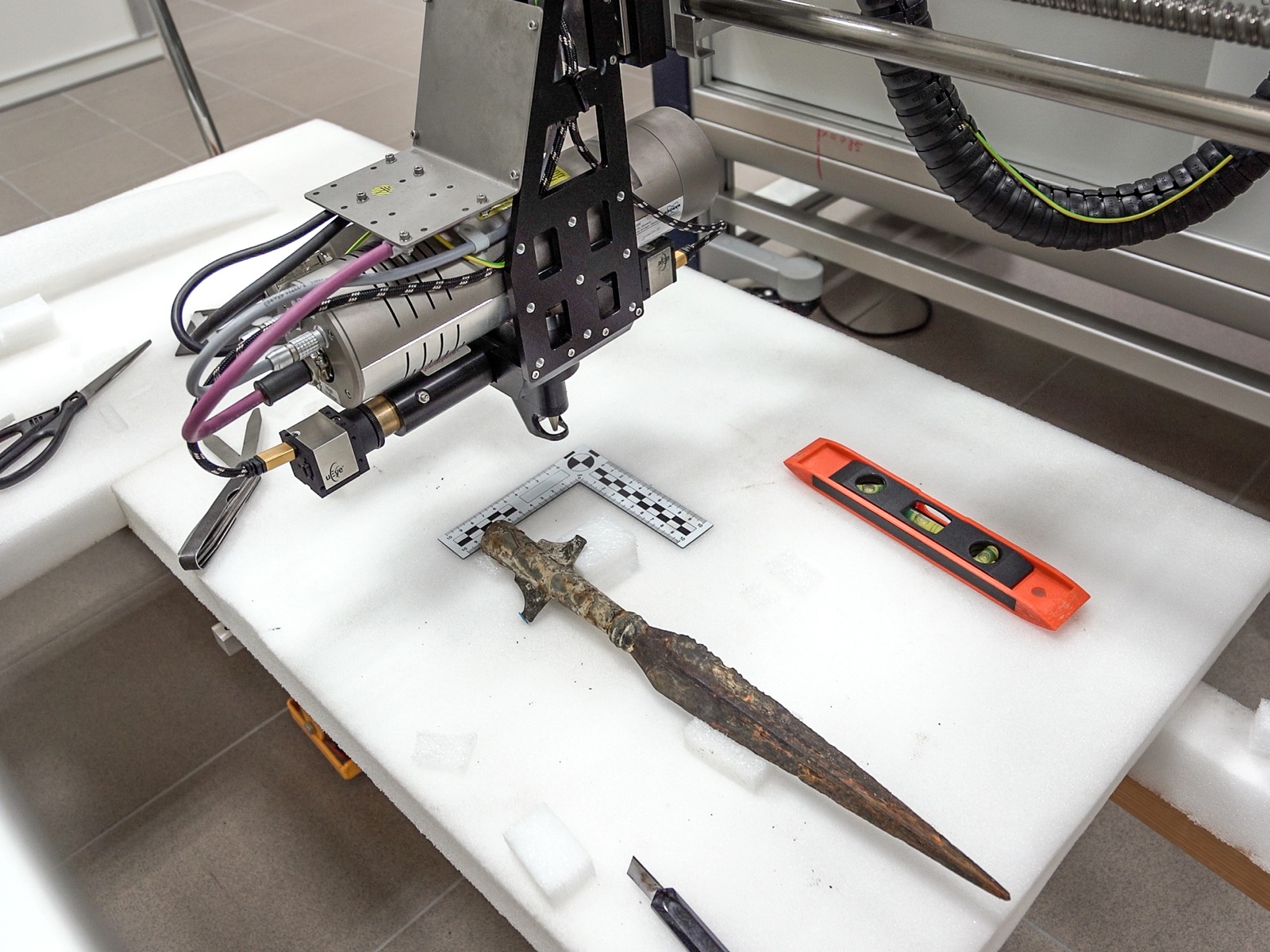 Aby odsłonić tajemnice włóczni, badacze wykorzystali nowoczesne techniki. Pod kierunkiem prof. Piotra Targowskiego z UMK zastosowano makrofluorescencję rentgenowską (MakroXRF), która pozwala ustalić rozkład pierwiastków chemicznych występujących na powierzchni grotów.