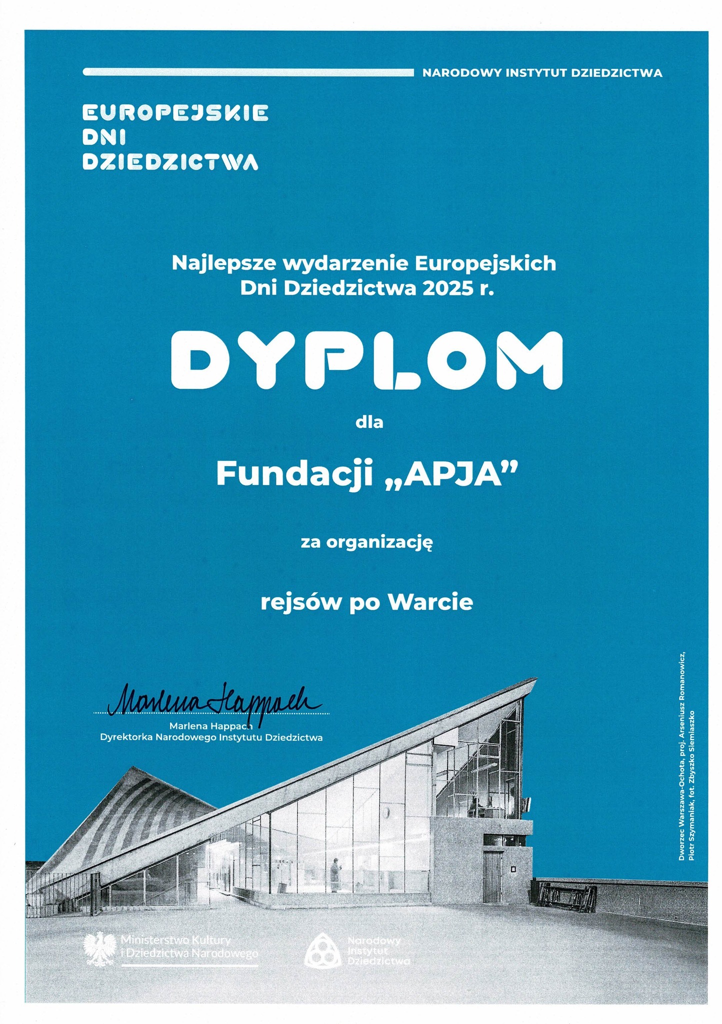 Lokalna inicjatywa, “Rejsy po Warcie – W stronę architektury. Młode dziedzictwo”, zorganizowana w ramach tegorocznych Europejskich Dni Dziedzictwa (EDD), została wyróżniona – najpierw nominacją, a następnie samym prestiżowym wyróżnieniem w największym wydarzeniu kulturalnym w Europie.