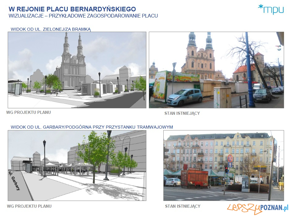 Pytaliśmy o opinię wszystkich poznaniaków: mieszkańców, sprzedawców, osoby, które robią tam zakupy albo pracują w pobliżu – mówi Bartosz Guss, zastępca prezydenta Poznania. – Z przeprowadzonych konsultacji wynikało, że poznaniacy chcą zachować funkcję handlową placu Bernardyńskiego, ale oczekują wydzielenia przestrzeni rekreacyjnej i wypoczynkowej, która będzie służyć mieszkańcom. Chcą też wyznaczenia miejsc postojowych dla samochodów oraz ustawienia na placu toalet i stacji rowerów miejskich. Ich postulaty zostały wzięte pod uwagę przy tworzeniu nowego planu zagospodarowania przestrzennego.